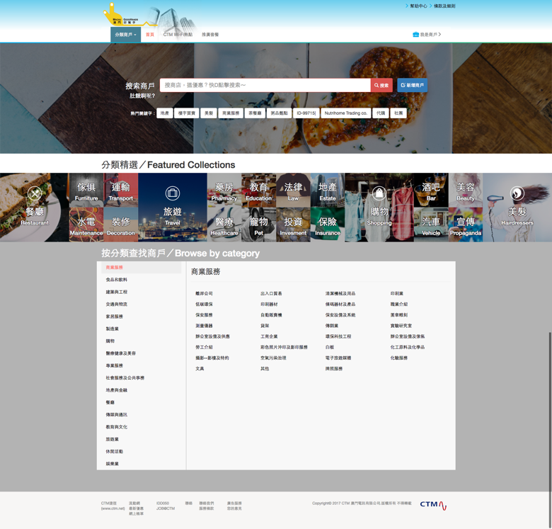 如何讓客戶在互聯網找到您? 澳門商業目錄是供大眾搜尋澳門商戶的平台,商戶只要註冊登記,即可建立商戶專頁,展示商戶及商品資料、發佈優惠活動,並助您提昇訊息可搜尋性,讓客戶透過Google等搜尋引擎自動"搜"上門!